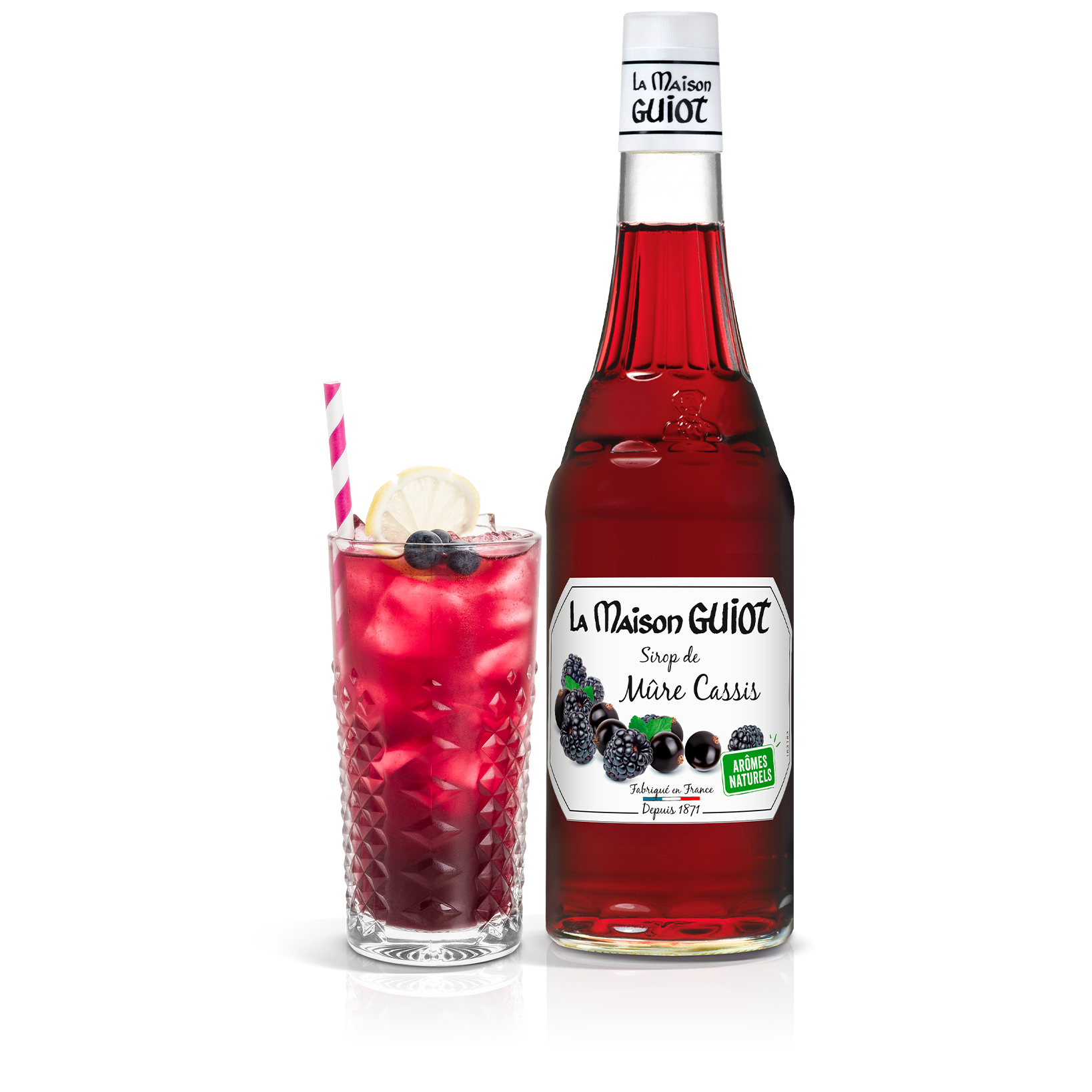 Le sirop de Mûre Cassis La Maison Guiot nous replonge à l’heure des grandes balades d’été et de la cueillette estivale en capturant la subtilité de la mûre et la puissance du cassis. Un équilibre juste qui nous offre un goût fruité aux notes légèrement acidulées.