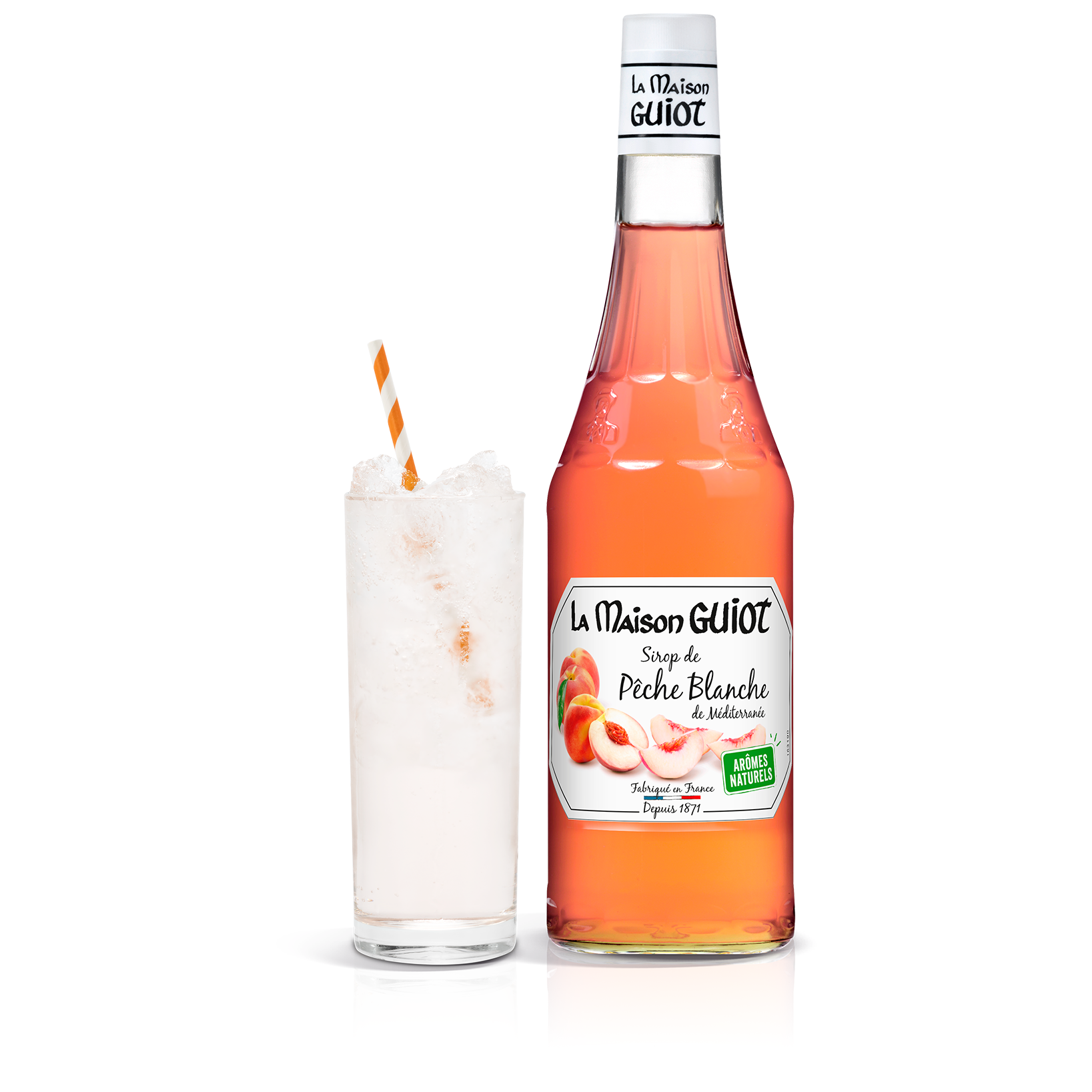 Le sirop de Pêche Blanche de Méditerranée La Maison Guiot sublime les arômes gourmands et légèrement acides de ce fruit juteux et savoureux. Un parfum emblématique de ces longues et belles journées passées sous le soleil du bord de mer.