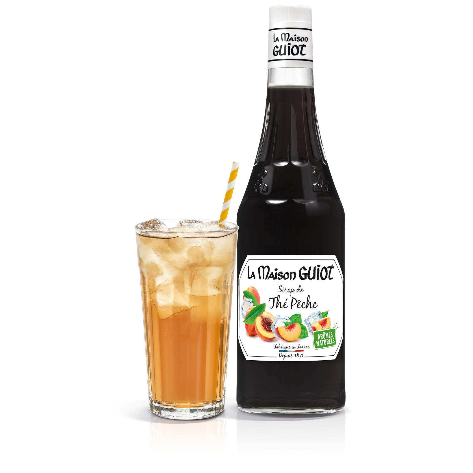 Le sirop de Thé Pêche La Maison Guiot révèle le bon goût du thé glacé rafraîchissant aux notes de pêches jaunes fraîchement cueillies. Une boisson à préparer en toute simplicité à la maison : une option économique et personnalisable.